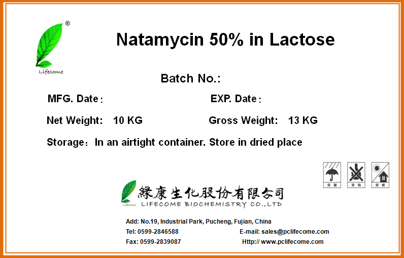 Lifecome Biochemistry Co. regularly supplies both active ingredient of natamycinand formulated form of natamycin (mainly 50%) to comply with customers' needs. However, the company can supply a highly pure product of natamycin, of which contentis more than 98%.